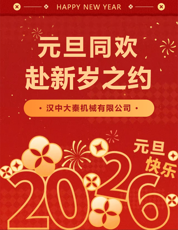 歲啟新元,福伴安康。值此2026年元旦佳節(jié),漢中大秦機(jī)械有限公司向所有合作伙伴、各界朋友致以誠(chéng)摯祝福!
